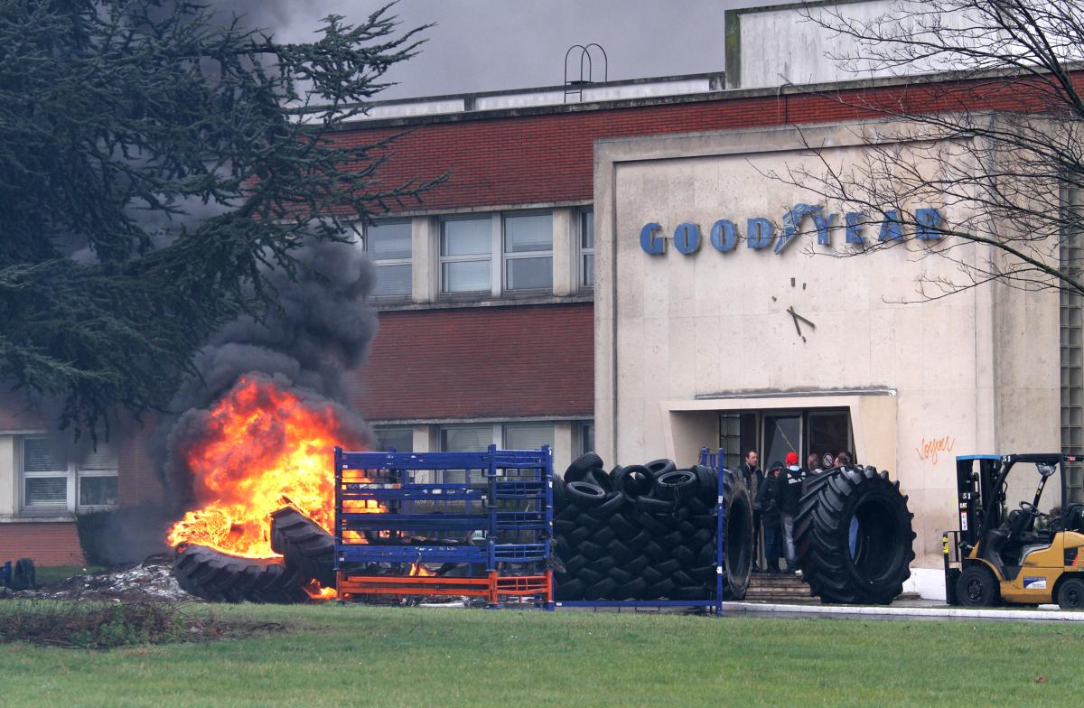 Jeudi 17 janvier 2014, rassemblement de soutien aux salariés de Goodyear qui occupent leur usine. Ce rassemblement à l'initiative de la section CGT d'ArcelorMittal a regroupé 300 personnes venues en délégation de différentes usines de la chimie et de l'automobile.