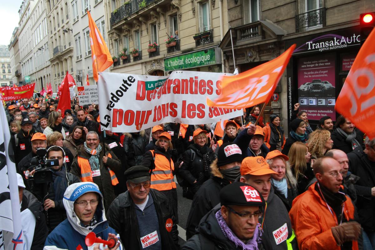 Le jeudi 21 novembre 2013, les salariéEs de La Redoute manifestent à Paris contre les licenciements annoncés, en direction du siège du groupe Pinault