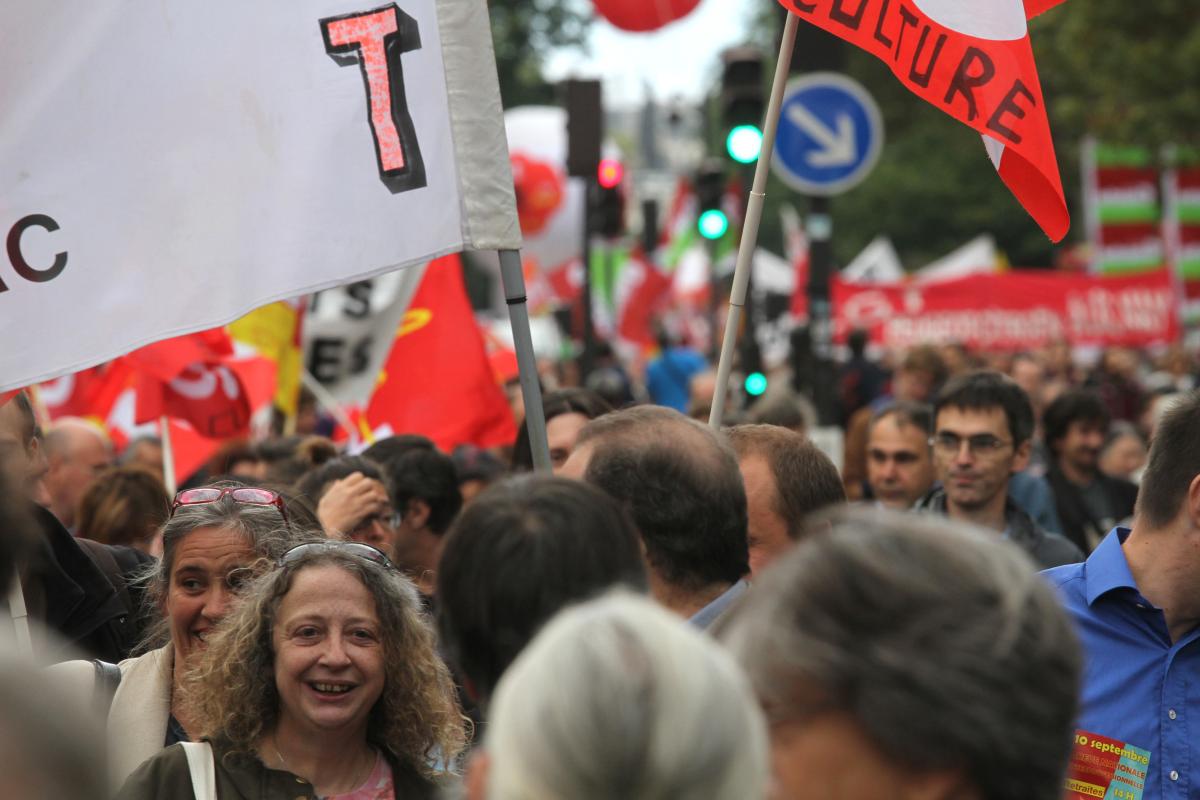 Le 10 septembre à Paris, manifestation intersyndicale contre le projet de réforme des retraites engagé par le gouvernement Hollande Ayrault