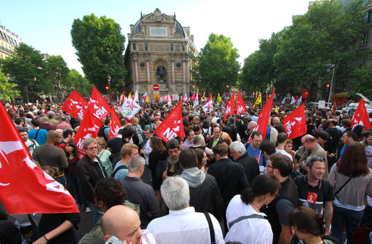 Rassemblement de protestation le 6 juin 2013, Place Saint-Michel à Paris suite à l'agression par les fascistes de Clément Méric, militant syndicaliste et antifasciste.