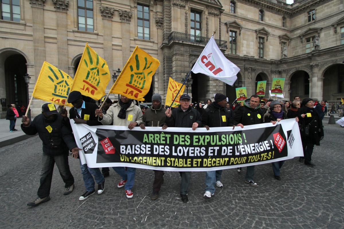 Manifestation le 16 mars 2013 à l'occasion de la fin de la trêve hivernale, contre les expulsions loocatives, pour le droit au logement
