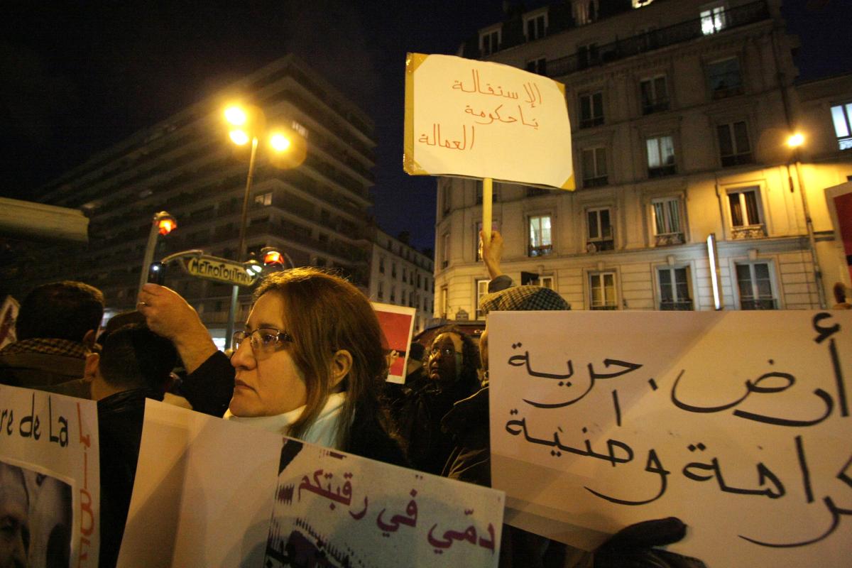 Rassemblement de protestation à Paris, le 7 février 2013, suite à l'assassinat de Chokri Belaïd en Tunisie.