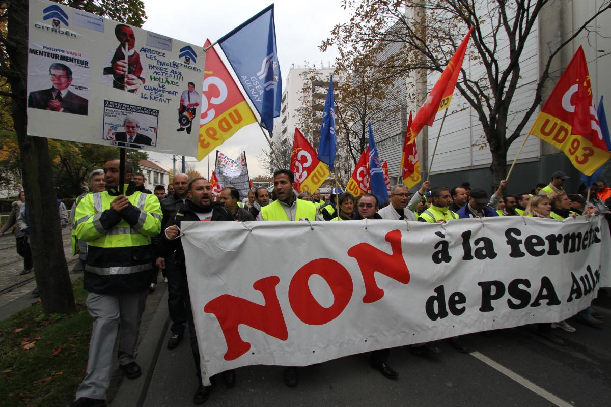 Le 8 novembre 2012, les salariés de PSA Aulnay manifestent en direction de la préfecture de Bobigny où se tient une réunion tripartite entre la direction de PSA une délégation des syndicats et le préfet.