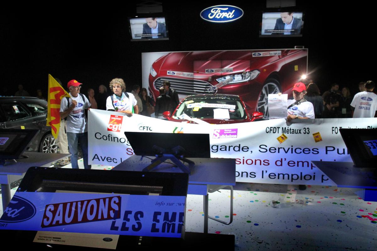 Le 29 septembre 2012 les salariés de Ford Blanquefort s'invitent au salon de l'auto, Porte de Versailles à Paris, pour manifester leur volonté de sauver leurs emplois. Ils refont la déco du stand selon l'expression de Philippe Poutou.