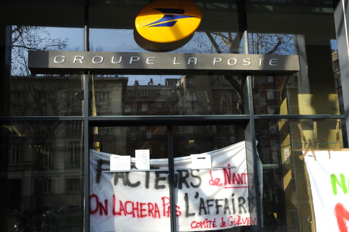 Occupation de la direction nationale de courrier de la Poste par les Postiers grévistes du 92 boulevard Brune Paris 09 mars 2012