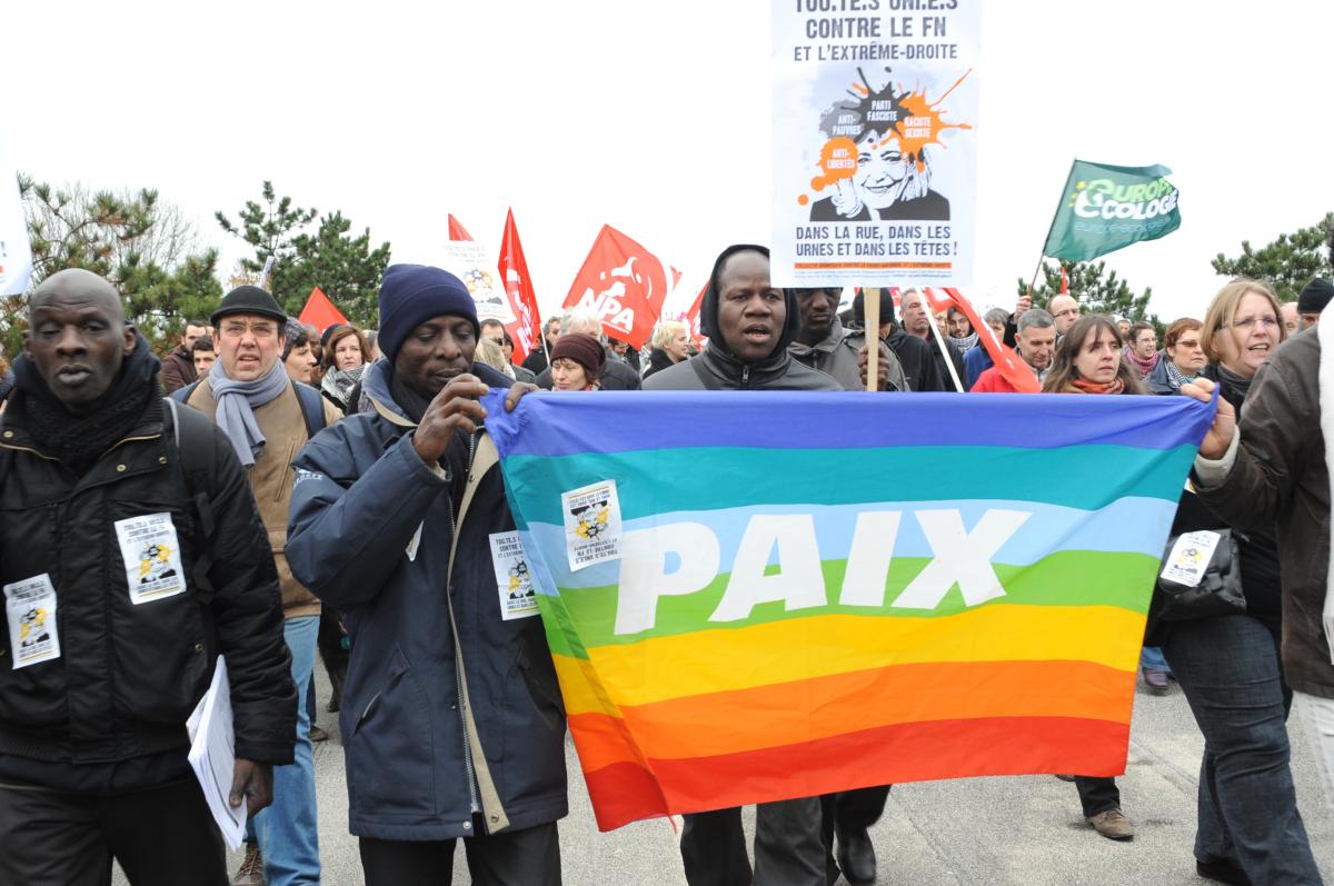 drapeau PAIX Manifestation contre le Front National saint Denis