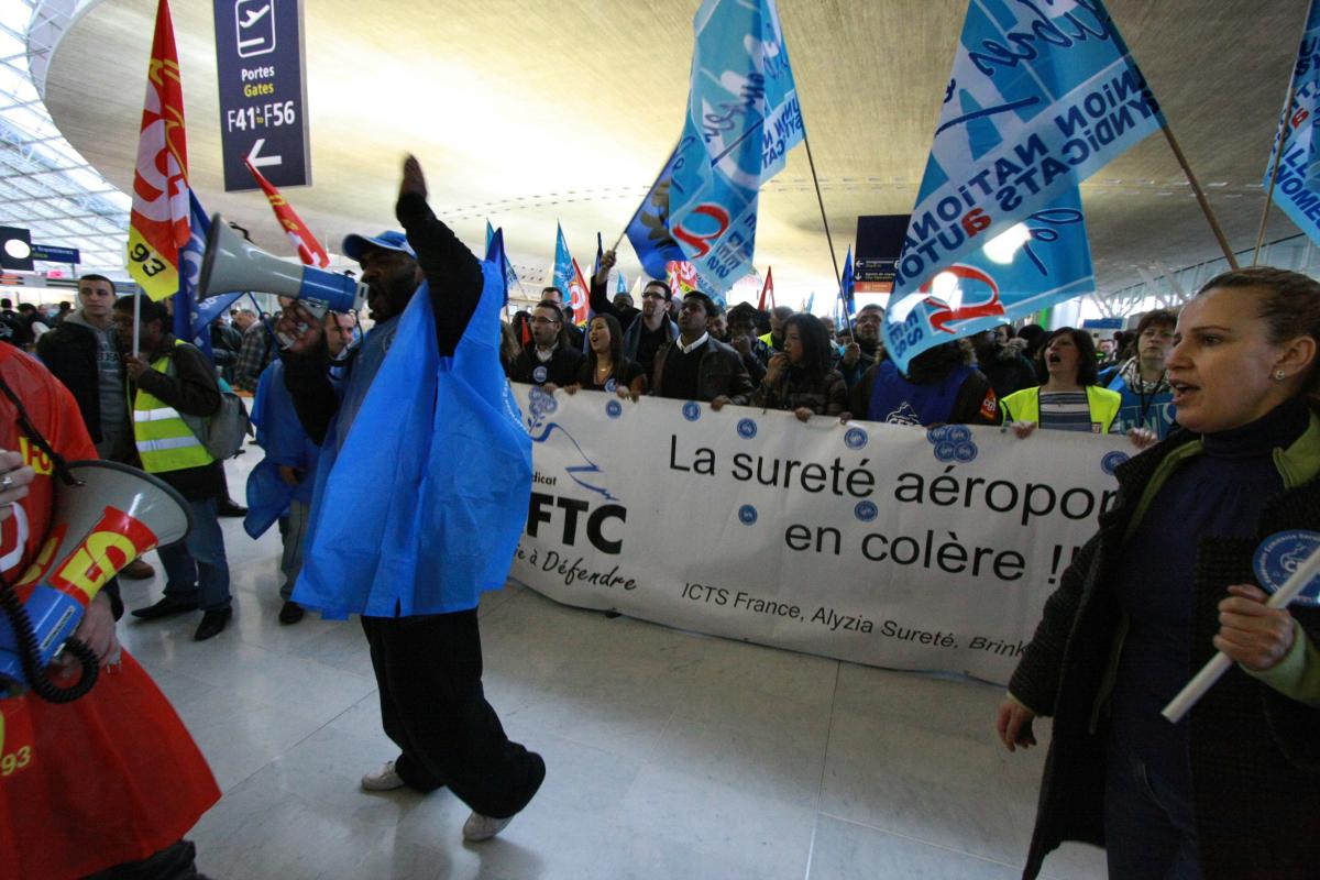 Roissy le 22 décembre 2011, meeting de soutien et manifestation des grévistes agents de sécurité dans les aéroports.