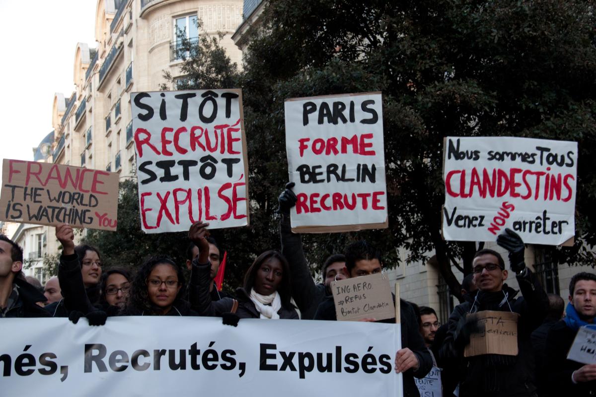 Paris, le 18 décembre 2011. Manifestation dans le cadre de la journée mondiale des migrants, avec notamment des collectifs de sans-papiers et le Collectif du 31 Mai dénonçant la circulaire Guéant.