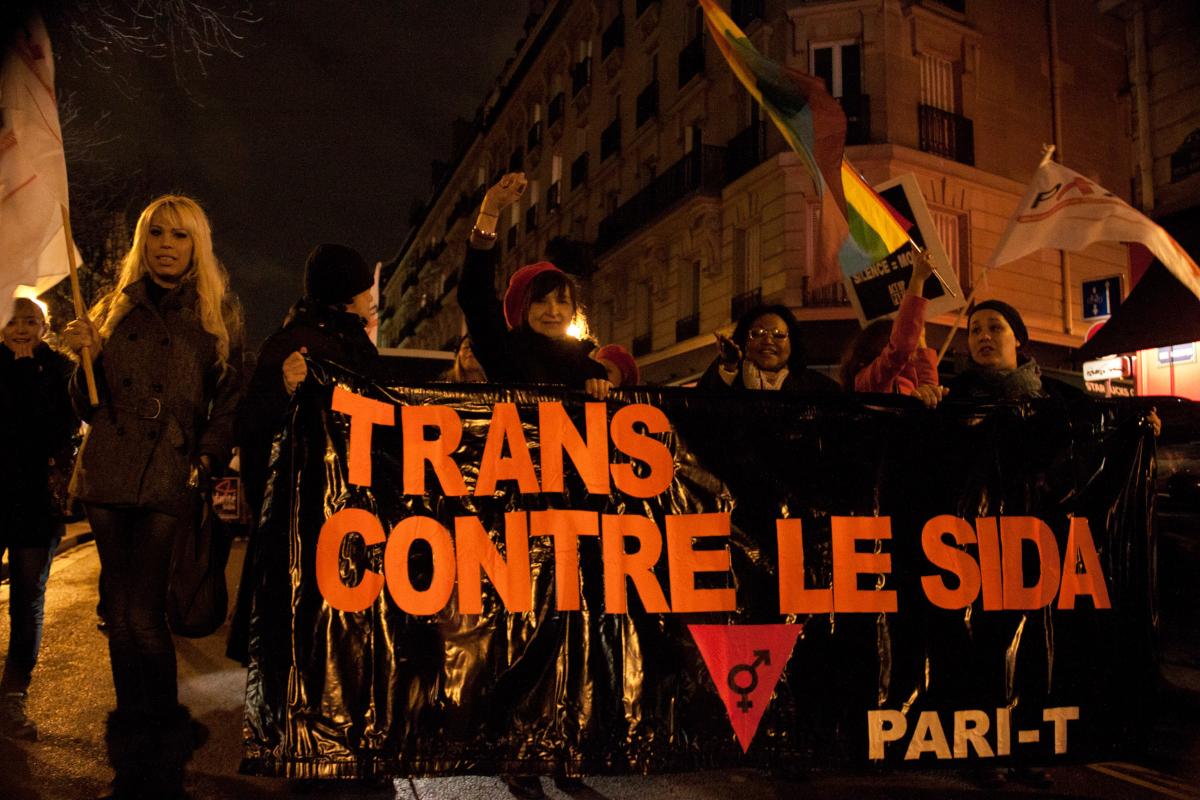 Paris, 1er Décembre 2011. Manifestation à l'appel d'Act Up Paris, dans le cadre de la journée mondiale de lutte contre le sida.