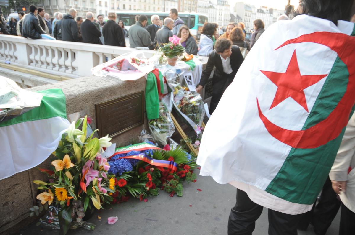 Drapeau Algérien et gerbe en souvenir du massacre du 17 Octobre 1961