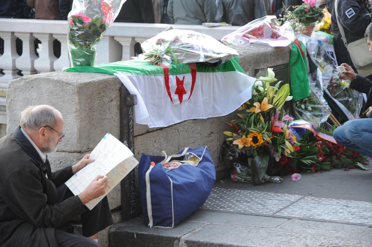Drapeau Algérien et gerbe en souvenir du massacre du 17 Octobre 1961
