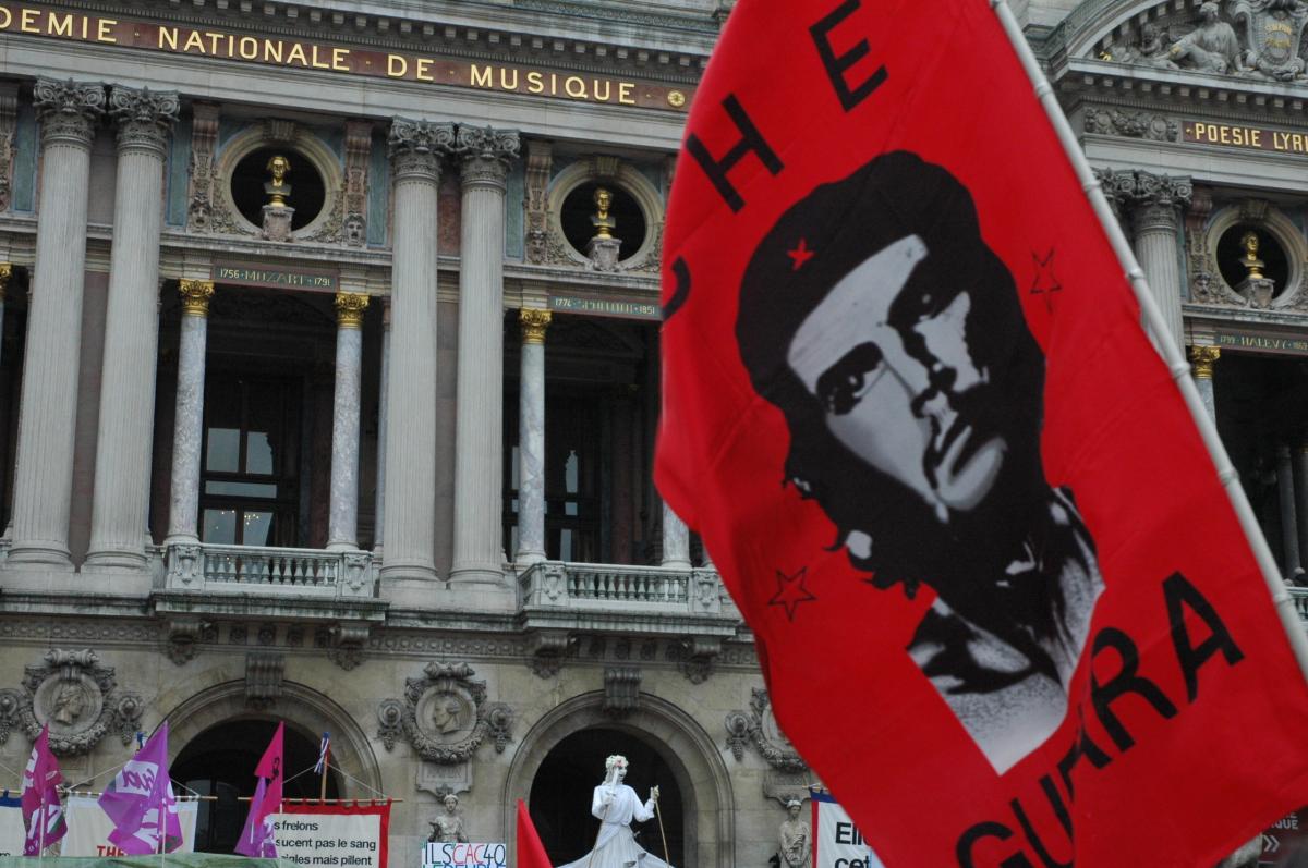 Drapeau Che Guevara devant l'Opera de Paris.
