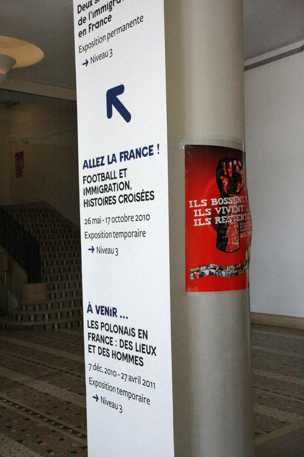 Depuis le jeudi 7 octobre 2010 les sans-papiers occupent la cité nationale de l'immigration, dans le Palais de la Porte Dorée à Paris, pour exiger le respect des engagements pris par le gouvernement concernant leur régularisation.