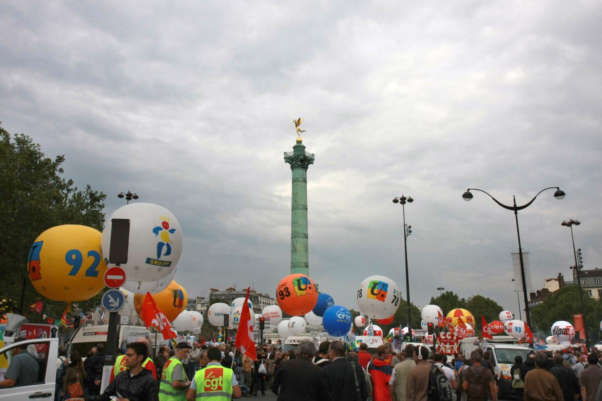 Paris le 23 septembre 2010 manifestation contre le projet gouvernemental sur les retraites. Bastille Denfert-Rochereau, deux cortèges.