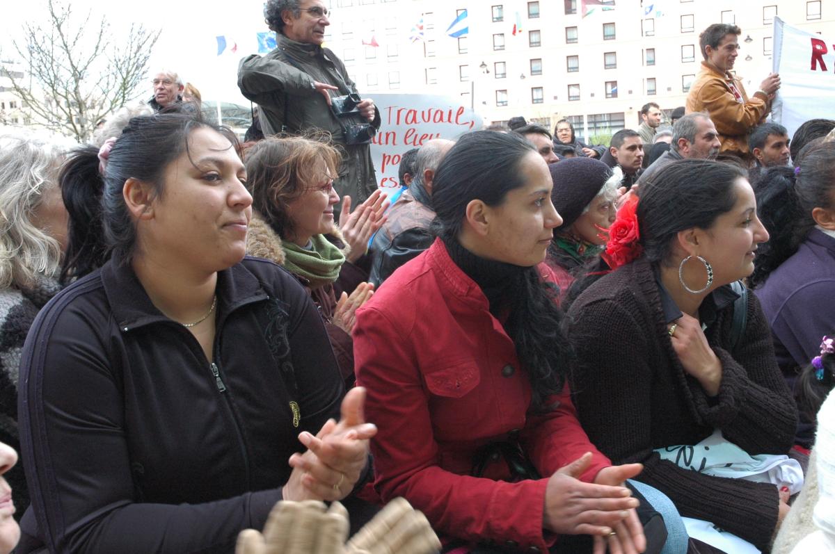 Femmes Roms Roumaines devant la mairie de Manuel Walls PS,Evry.
