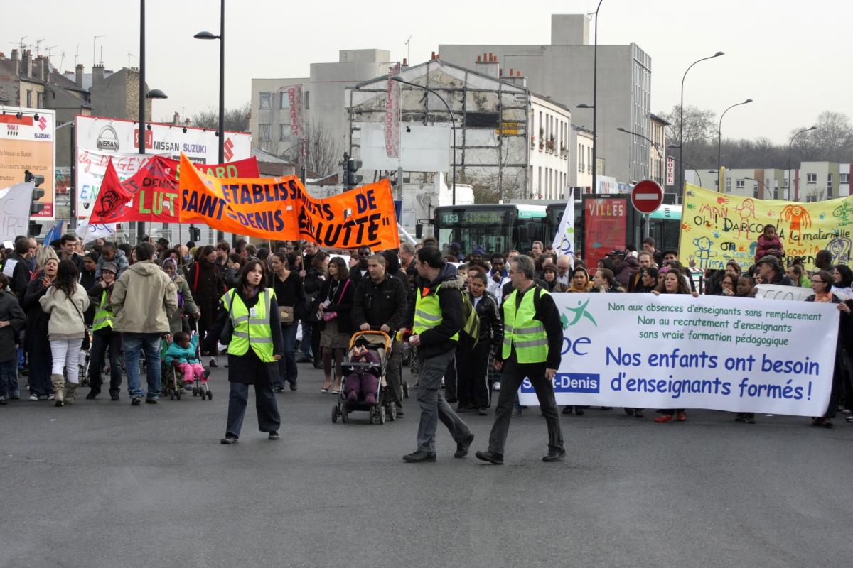 jeudi 18 mars 2010 école morte à Saint Denis. Grève, rassemblement, manifestation avec blocage des principaux carrefour de la ville et occupation de l'inspection académique
