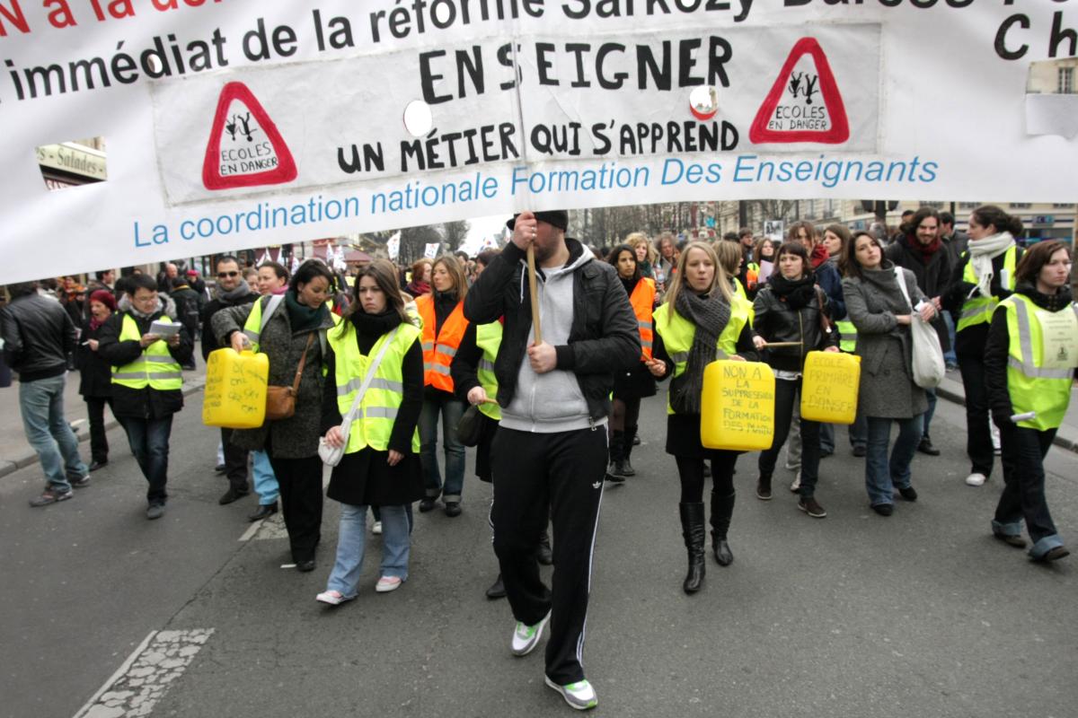 le 12 mars 2010 grève et manifestation des enseignants contre les réformes, contre la réduction des postes, la suppression de la formation.