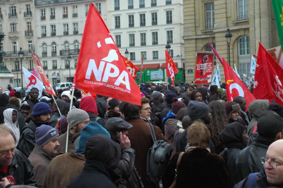 Drapeau NPA à la manifestation des Sans-papiers au Panthéon Paris.