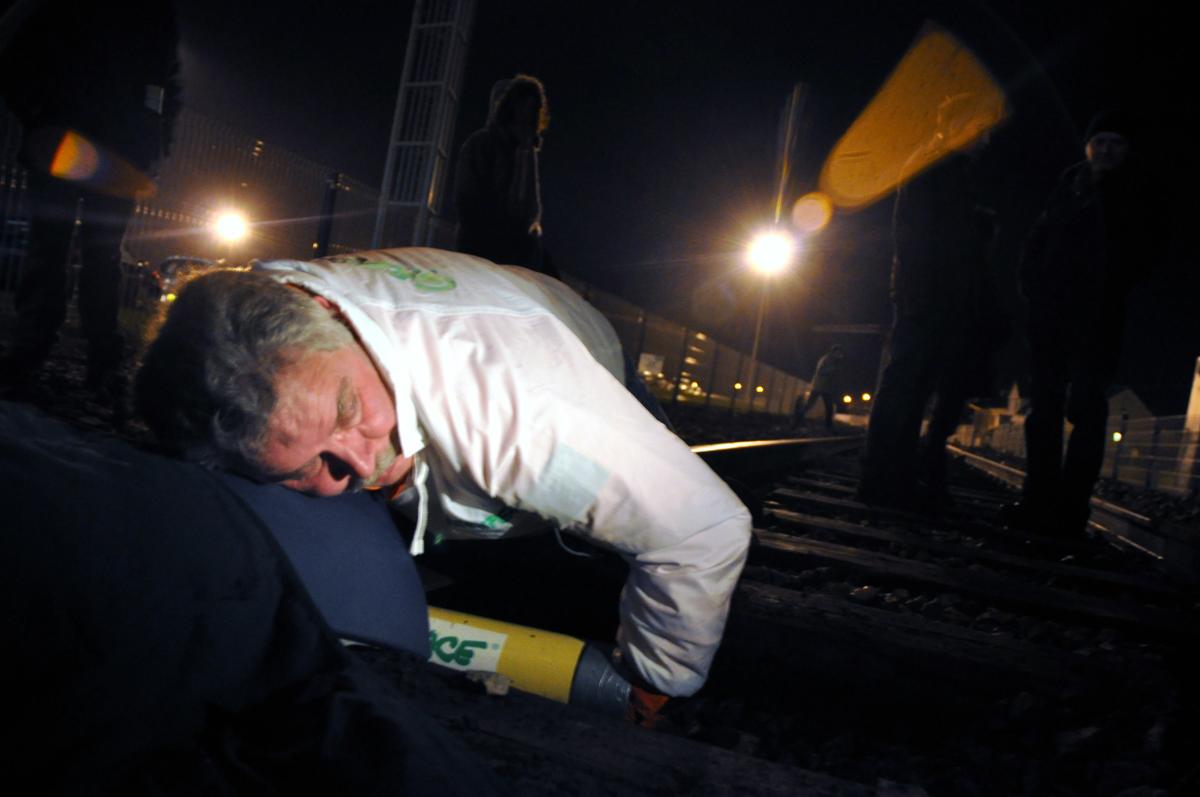 Yannick Rousselet enchaîné sur la voie ferrée