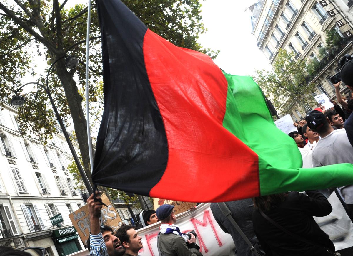 Drapeau d'Afghanistan. Le noir représente la tradition, le rouge, le sang des héros et le vert, l'Islam
