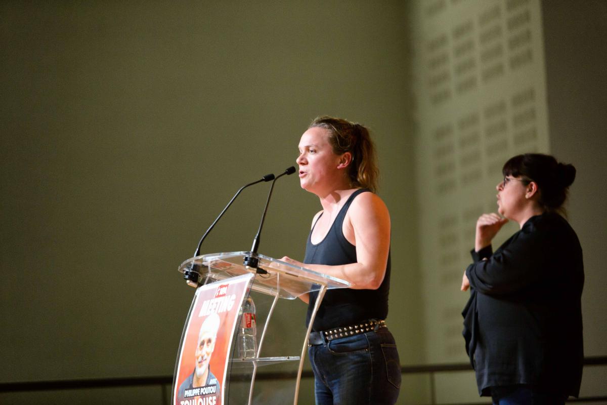 France, Toulouse, 2022-04-07. Pauline Salingue takes the floor. Philippe Poutou s meeting Photograph by Martin Noda / Hans Lucas