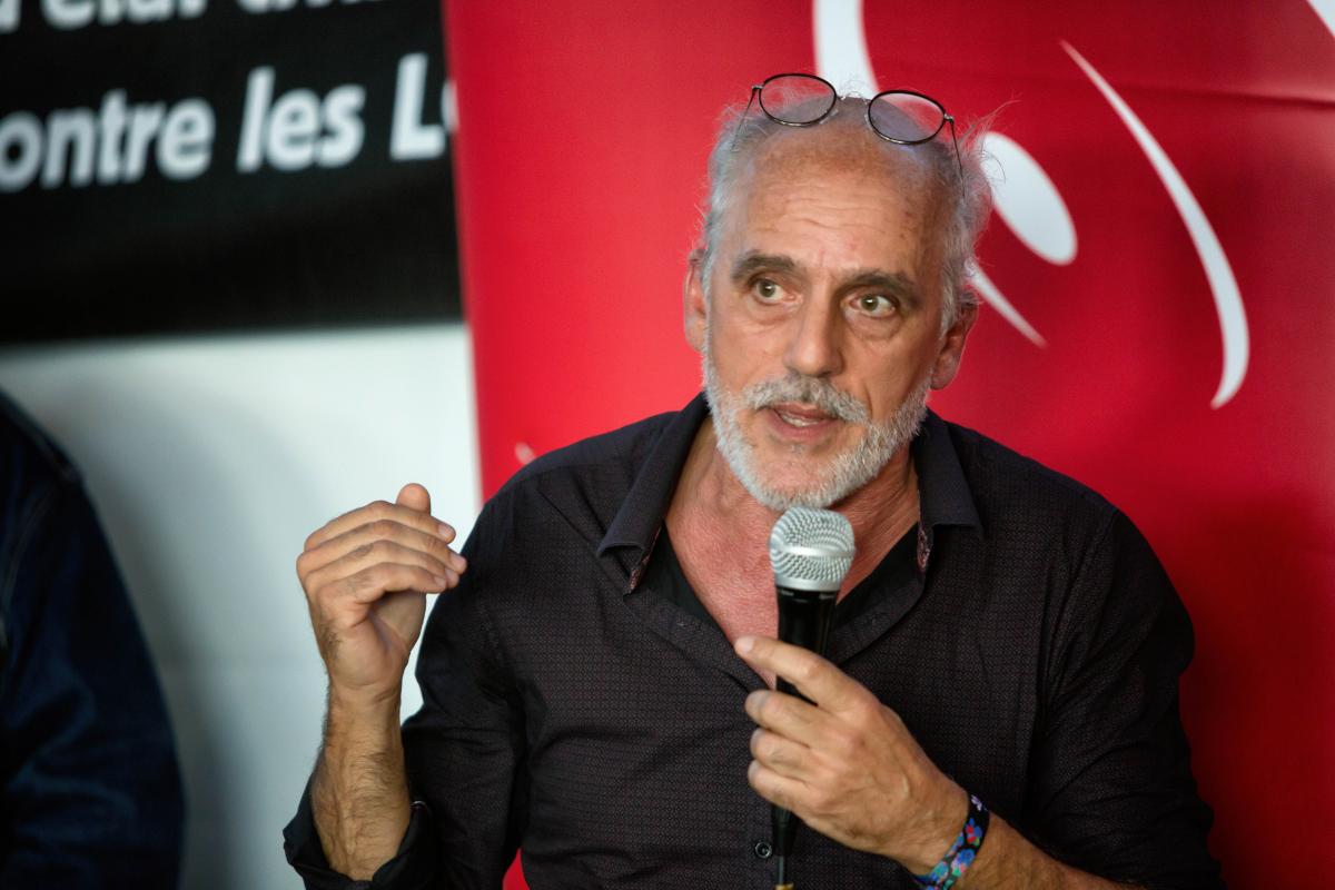 France, Bretigny-sur-orge, 2022-09-12. Philippe Poutou takes the stand. NPA stand at the fete de l humanite. Photograph by Martin Noda / Hans Lucas