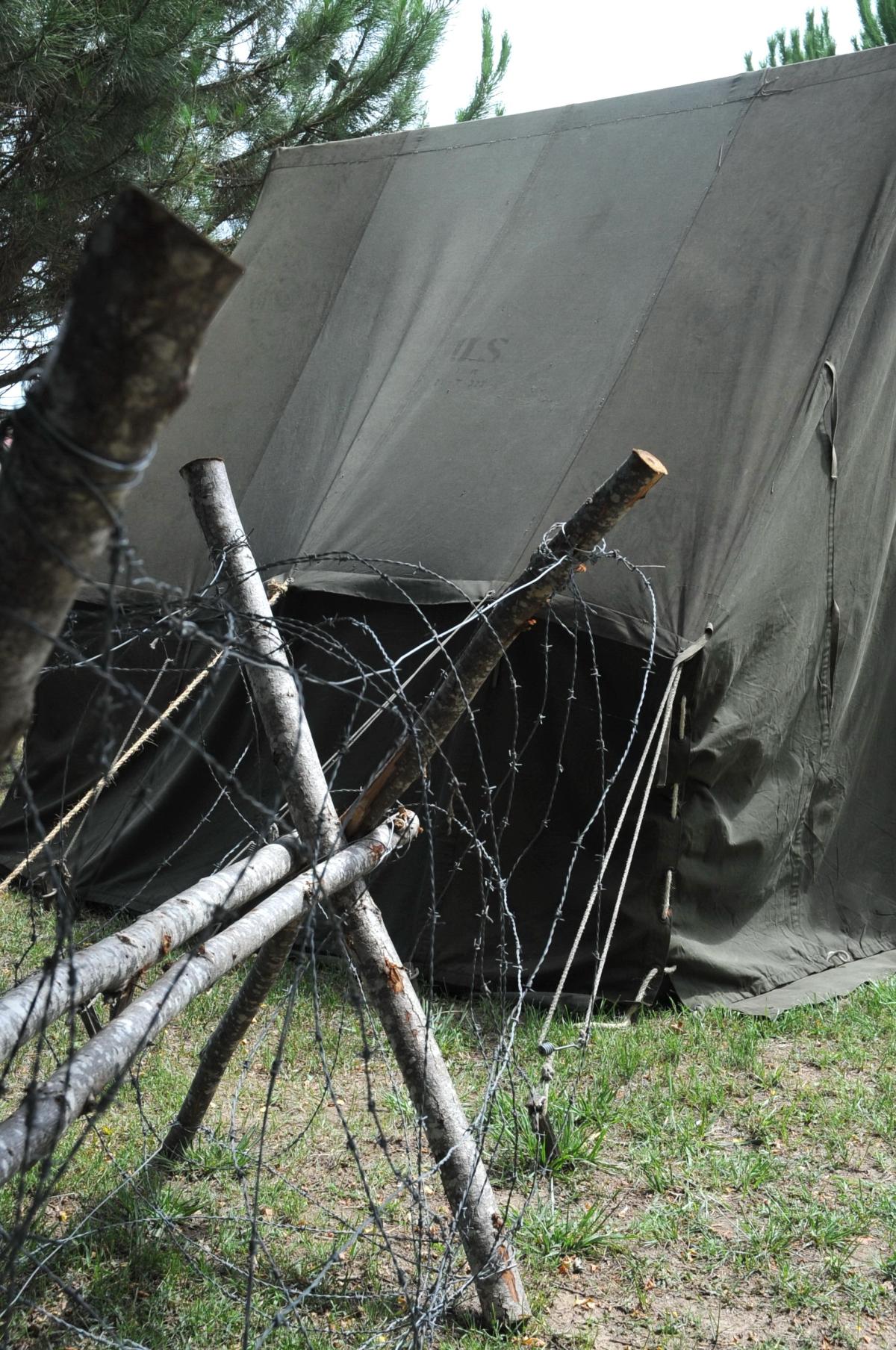 reconstitution dun camp militaire de la seconde guerre mondiale chevaux de Frise et tente