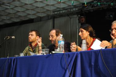 Débat Che Guevara 6 octobre 2007 intervenants Maurice Lemoine journaliste Christine Poupin Daniel Bensaï st Denis photo publiée dans Rouge n°2222