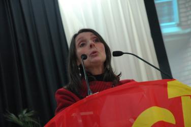 Christine Poupin, tête de Liste NPA Région Haute-Normandie avec les Cheminots