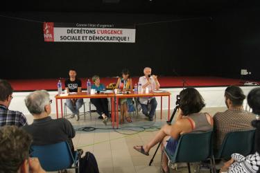 La tribune avec Olivier Besancenot, Catherine Samary, Christine Poupin et Jean-Jacques Marie