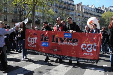 Banderole La Quadrature du Net association de défense des droits et libertés des citoyens sur Internet manifestation unitaire contre l'état d'urgence.