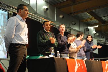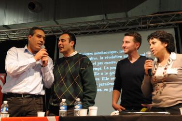 Convivialité et sourires à la fin du meeting de solidarité Tunisie Egypte au 1er congrès du NPA