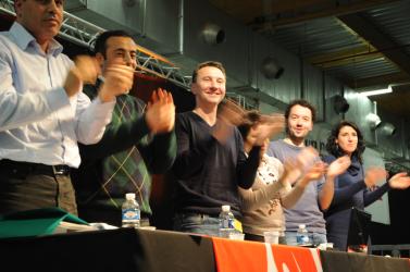 l' internationale chanté au Meeting de solidarité Tunisie Egypte au 1er congrès du NPA