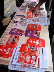 Table du Npa au point fixe de la manifestation et grève de la Fonction Publique 22 mai 2018 Paris