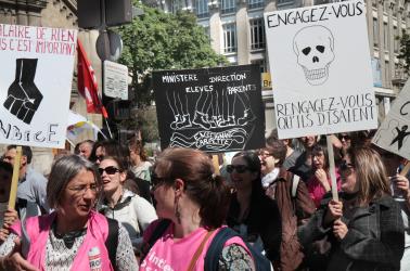 Infirmières chantant des slogans.