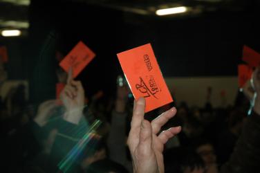 Mains levées avec mandat pour un vote