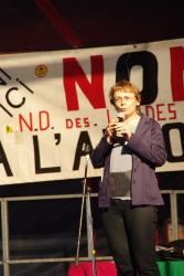 Myriam Martin porte parole du NPA au meeting contre la construction de l'aéroport Notre Dame des Landes
