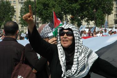 manifestante pour la levée du blocus de GAZA sur le pont d'Austerlitz Paris.
