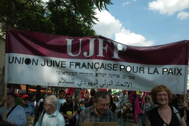 Banderole de l'UJFP Union Juive Française pour la Paix.