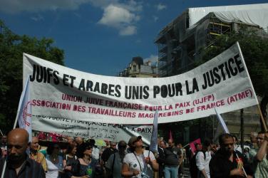banderole Juifs et Arabes unis pour la justice.