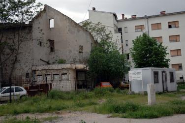 Mostar, quartier Ouest. Emplacement de la synagogue.