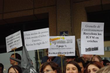 pancarte pour plus de moyen à l'éducation contre les dons faits aux banques par sarkosy