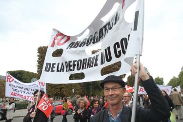 Banderole de tête du cortège syndical