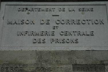 Stèle de la Maison de Correction et Infirmerie centrale des Prisons à Fresnes. Liberté Egalité Fraternité.