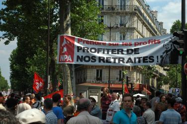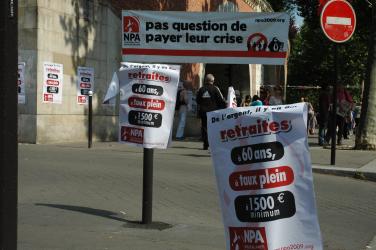 banderole NPA Prendre sur les Profits, Profiter de nos Retraites.