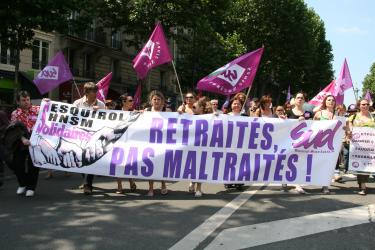 Banderole retraites dans cortège de Solidaires