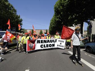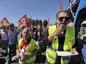 au micro, Gilles Cazin secrétaire de la CGT Renault Cléon