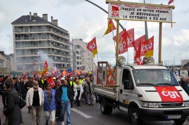 Camion CGT avec pancarte