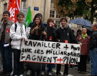 Banderole de tête de manif à Brest le 7 septembre 2010