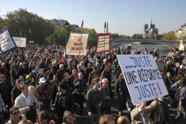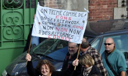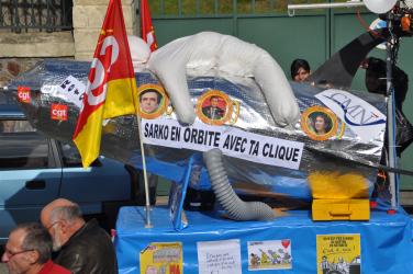pancarte juste une retraite juste et cortège du théatre du Soleil